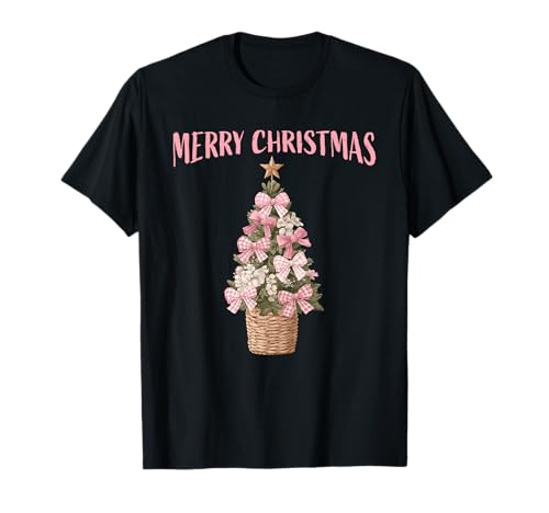 Aesthetic Christmas Tree with Pink Bow Coquette Girly Xmas T-Shirt