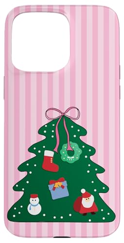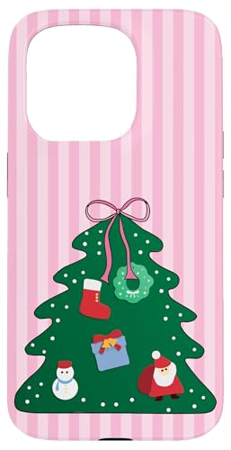 Cute Christmas Tree with Bow Aesthetic Pink Striped Girls Case for iPhone 15 Pro