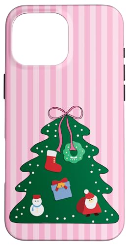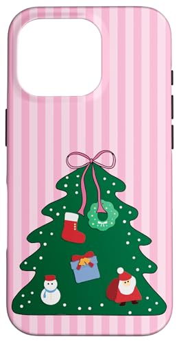Cute Christmas Tree with Bow Aesthetic Pink Striped Girls Case for iPhone 16 Pro