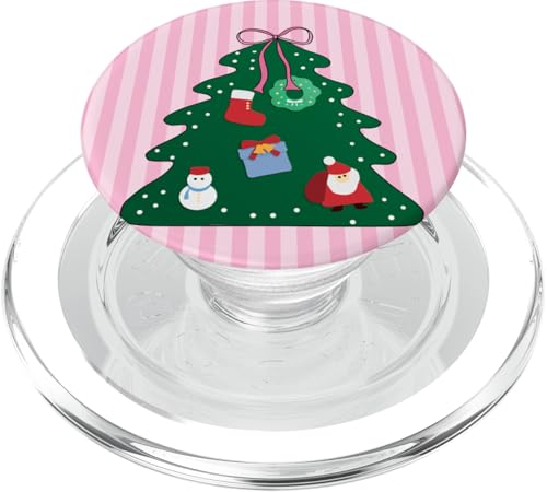 Cute Christmas Tree with Bow Aesthetic Pink Striped Girls PopSockets PopGrip for MagSafe