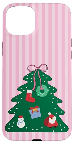 Cute Christmas Tree with Bow Aesthetic Pink Striped Girls Case for iPhone 15
