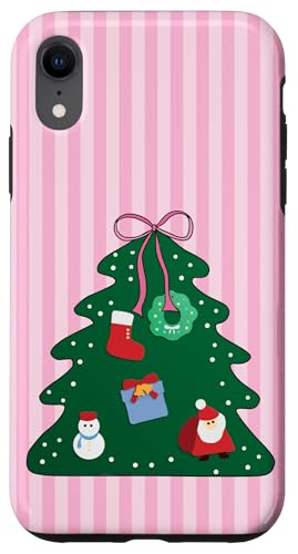 Cute Christmas Tree with Bow Aesthetic Pink Striped Girls Case for iPhone XR