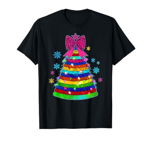 Rainbow Leopard Print Christmas Tree with Pink Bow Holiday T-Shirt