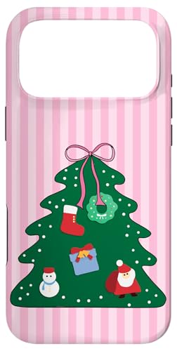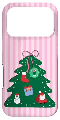 Cute Christmas Tree with Bow Aesthetic Pink Striped Girls Case for iPhone 17 Pro