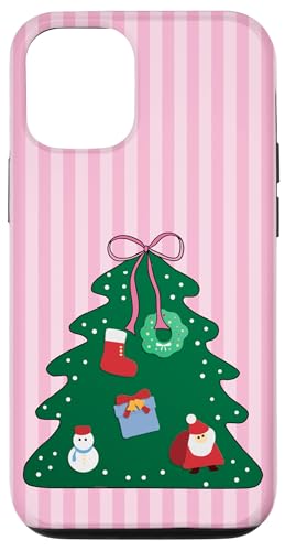 Cute Christmas Tree with Bow Aesthetic Pink Striped Girls Case for iPhone 12/12 Pro