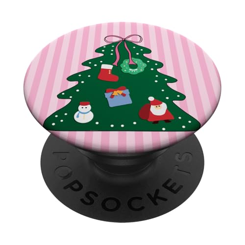 Cute Christmas Tree with Bow Aesthetic Pink Striped Girls PopSockets Adhesive PopGrip