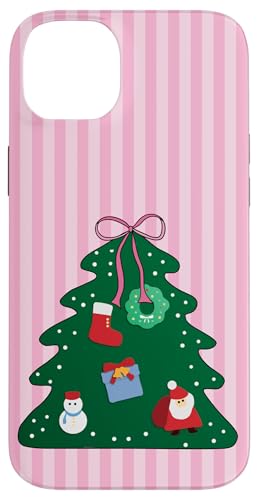 Cute Christmas Tree with Bow Aesthetic Pink Striped Girls Case for iPhone 14 Plus