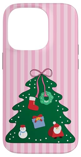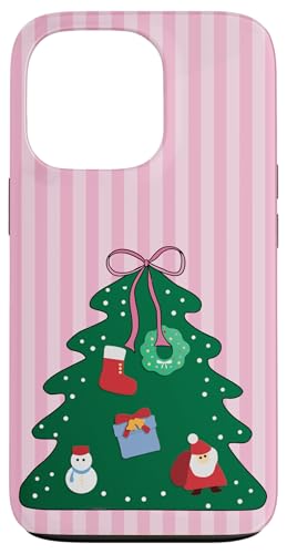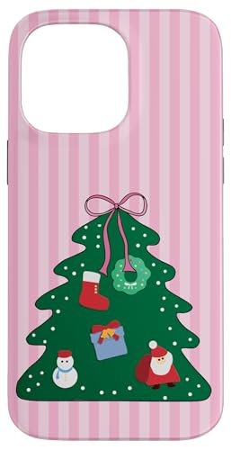 Cute Christmas Tree with Bow Aesthetic Pink Striped Girls Case for iPhone 13 Pro