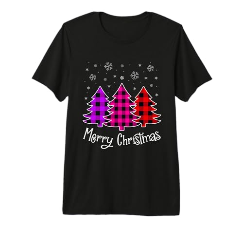 Merry Christmas Tree with Buffalo Pink Plaid Women Girl Teen Premium T-Shirt