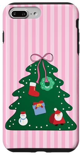 Cute Christmas Tree with Bow Aesthetic Pink Striped Girls Case for iPhone 7 Plus/8 Plus