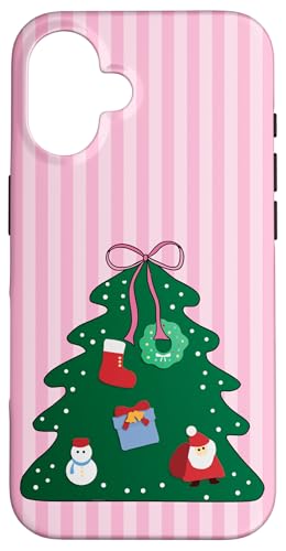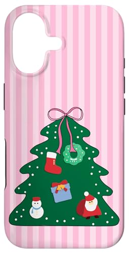Cute Christmas Tree with Bow Aesthetic Pink Striped Girls Case for iPhone 16