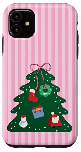 Cute Christmas Tree with Bow Aesthetic Pink Striped Girls Case for iPhone 11