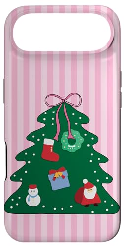 Cute Christmas Tree with Bow Aesthetic Pink Striped Girls Case for iPhone Air