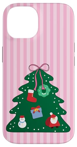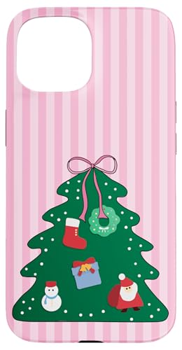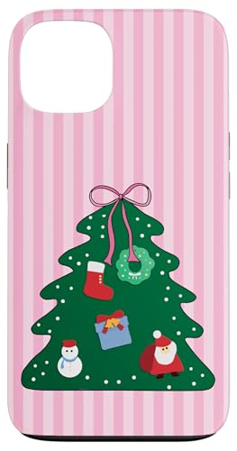Cute Christmas Tree with Bow Aesthetic Pink Striped Girls Case for iPhone 13