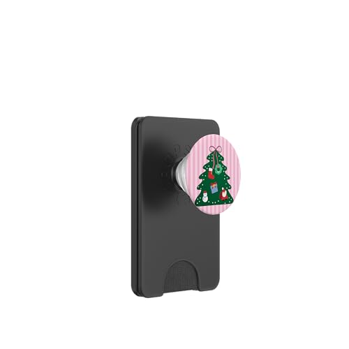 Cute Christmas Tree with Bow Aesthetic Pink Striped Girls PopSockets PopWallet for MagSafe