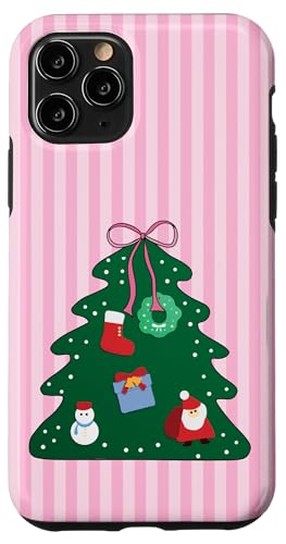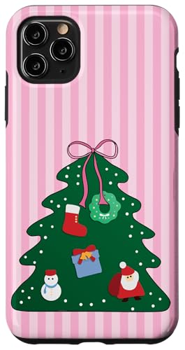 Cute Christmas Tree with Bow Aesthetic Pink Striped Girls Case for iPhone 11 Pro