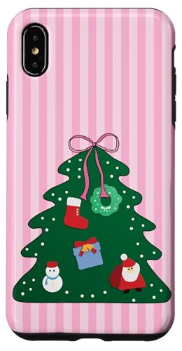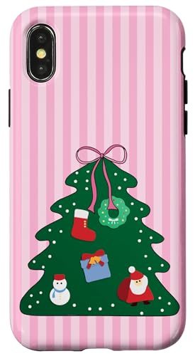 Cute Christmas Tree with Bow Aesthetic Pink Striped Girls Case for iPhone XS Max