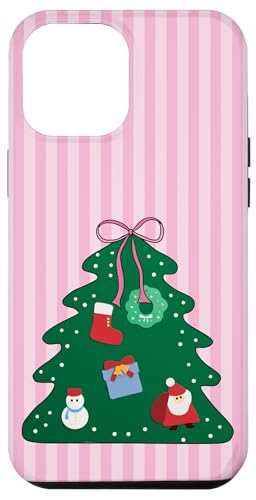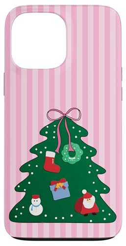 Cute Christmas Tree with Bow Aesthetic Pink Striped Girls Case for iPhone 13 Pro Max