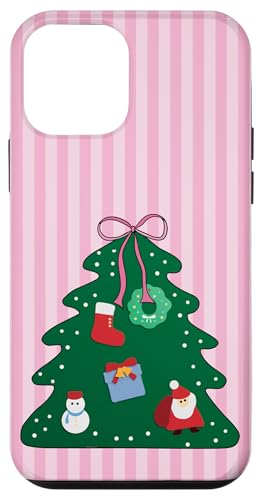 Cute Christmas Tree with Bow Aesthetic Pink Striped Girls Case for iPhone 12 Pro Max