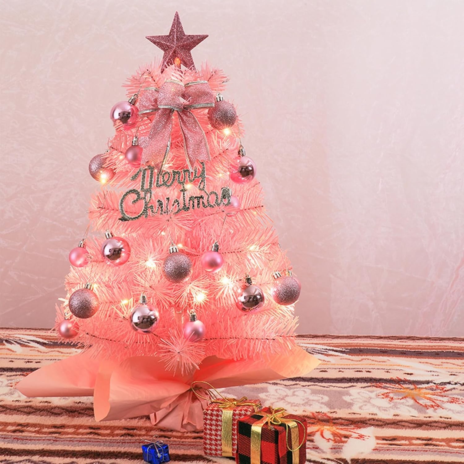 AGM Mini Christmas Tree with Lights, Small Pink Tabletop Christmas Tree with Mini Baubles for Indoor Outdoor Christmas Holiday Decoration