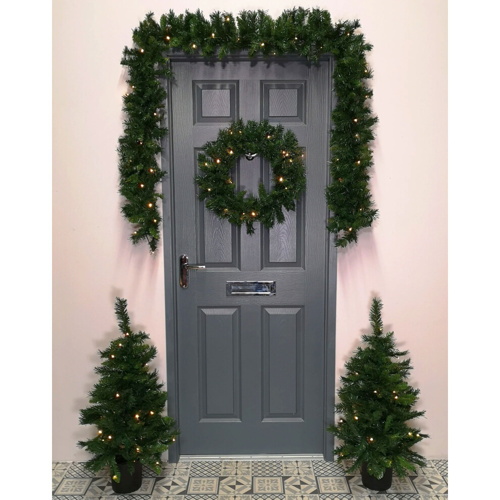 Set of 4 Premier Pre Lit Christmas Door Decoration Kit PVC/ Cashmere - 90cm Trees / Garland & 50cm Wreath