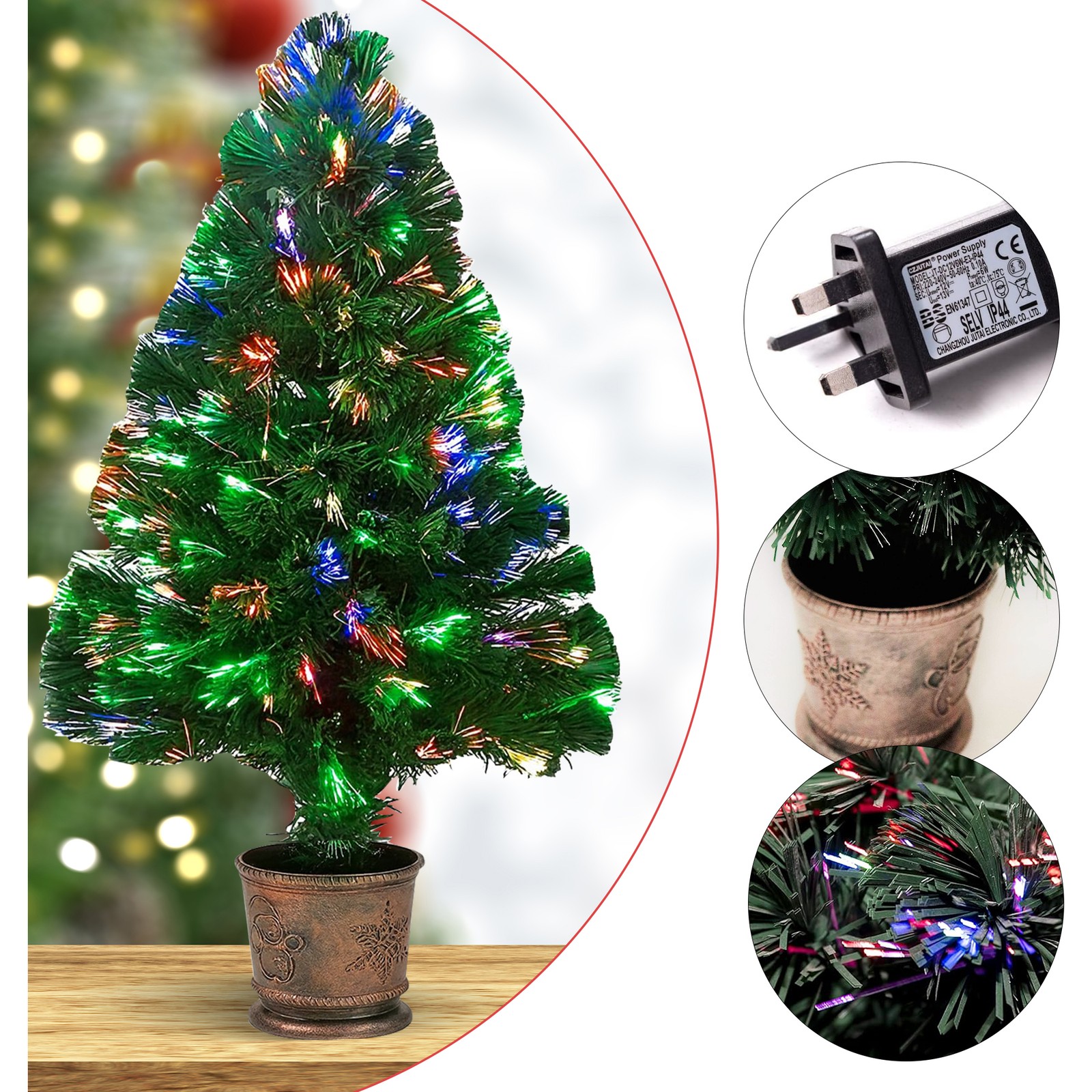 2FT Pre Lit Fibre Optic Christmas Tree LED Light Up Mini Xmas Trees Green Home