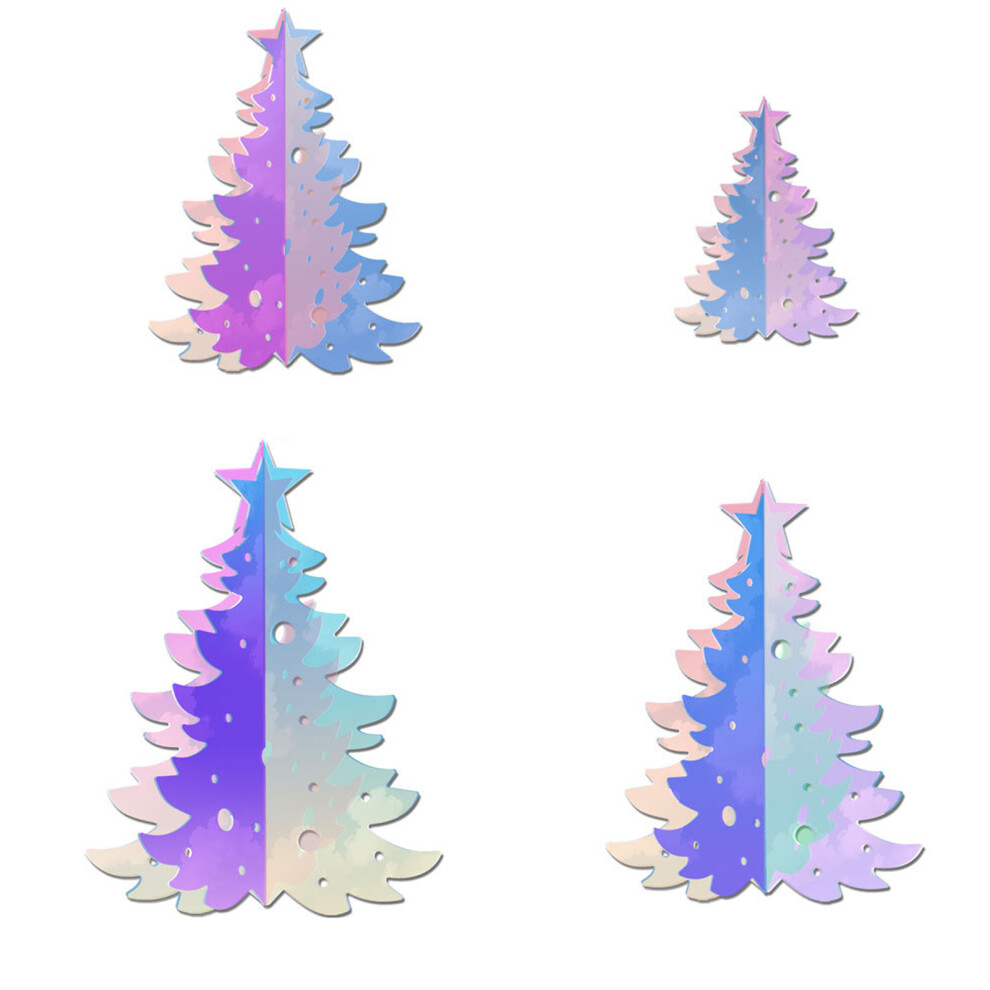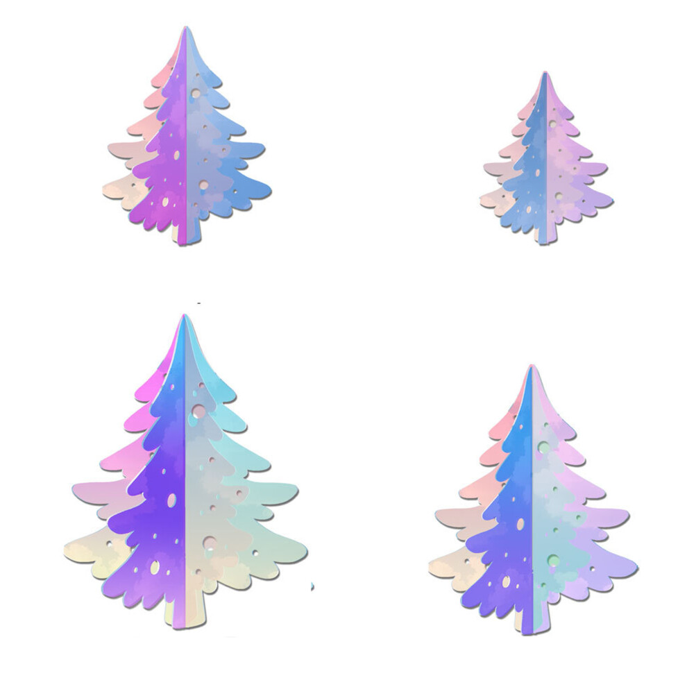 (TY687) 4pcs/set Iridescent Christmas Tree With Lasers Effects Reusable For