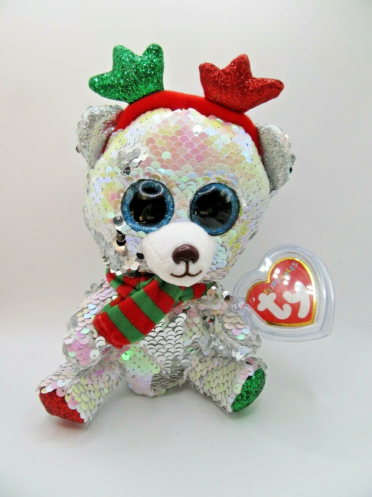 TY BEANIE BABY BOOS FLIPPABLES - CHRISTMAS MISTLETOE BEAR - NEW WITH TAGS