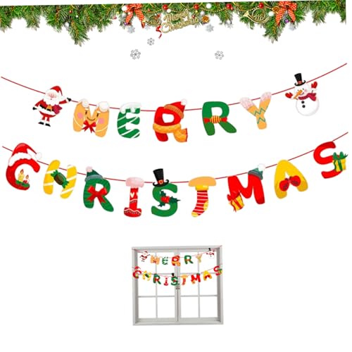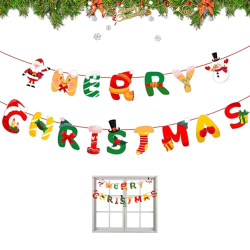 fkngcp Merry Christmas Banner Flags Hanging Letters Christmas Wall Decorations Paper Banner wth String for Fireplace/Wall/Window