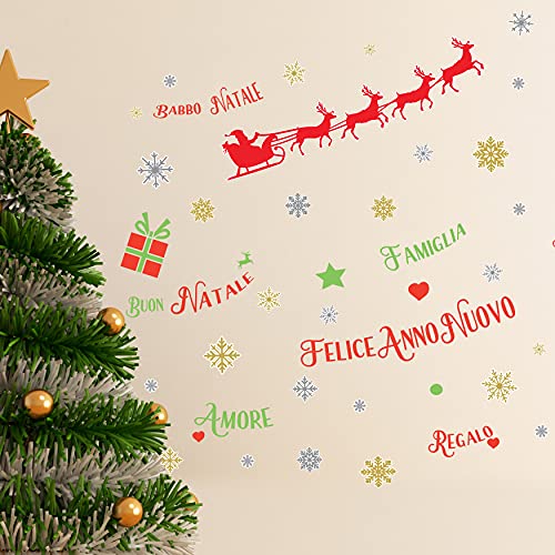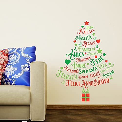 Wallflexi Christmas Decorations Wall Stickers " Merry Christmas & Italian Quotes Christmas Tree" Wall Murals Decals living Room Children Nursery School Restaurant Cafe Hotel Home Office Décor, multicolour