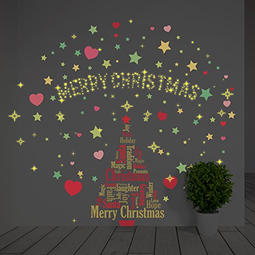 Wallflexi Christmas Decorations Wall Stickers " Magic Glow in Dark English Quotes Christmas Tree " Wall Murals Decals living Room Children Nursery School Restaurant Cafe Hotel Home Office Décor, multicolour