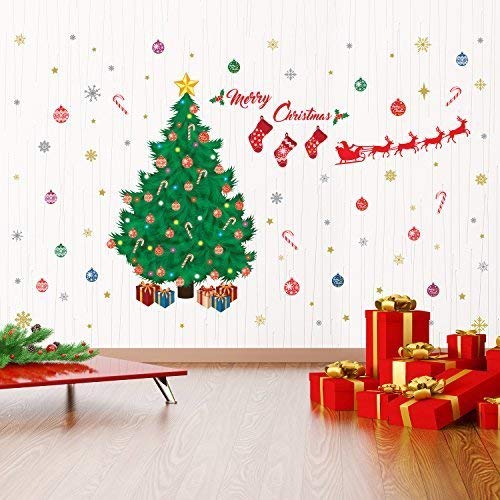 Wallflexi Christmas Decorations Wall Stickers Merry Christmas Decoration Set Wall Murals Decals Living Room Children Nursery School Restaurant Cafe Hotel Home Office Décor, Multicolour