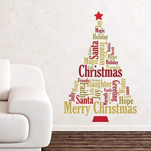 Wallflexi Christmas Decorations Wall Stickers " English Quotes Christmas Tree " Wall Murals Decals living Room Children Nursery School Restaurant Cafe Hotel Home Office Décor, multicolour