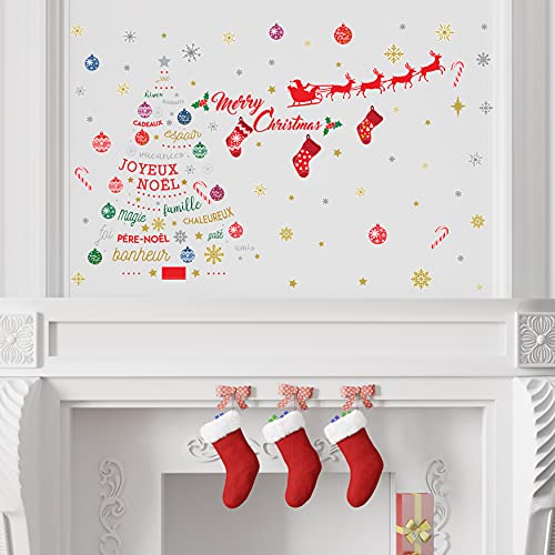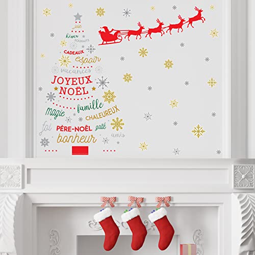 Wallflexi Christmas Decorations Wall Stickers "Santa's Sleigh & French Quotes Christmas Tree" Wall Murals Decals living Room Children Nursery School Restaurant Cafe Hotel Home Office Décor, multicolour