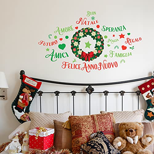Wallflexi Christmas Decorations Wall Stickers " Christmas Garland with Italian Quotes " Wall Murals Decals living Room Children Nursery School Restaurant Cafe Hotel Home Office Décor, multicolour