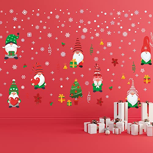 WALPLUS Christmas Combo Decorations Wall Stickers Xmas Gnomes with Delicate Snowflakes Wall Art Window Display Clings Display Decals Living Room Home Living Room Bedroom DIY Gift