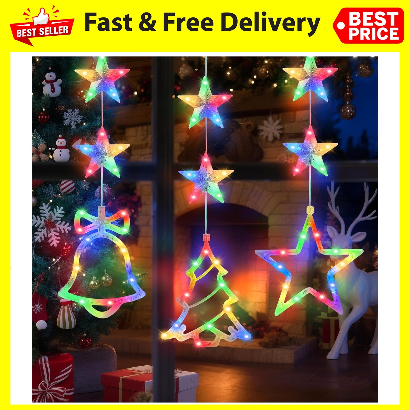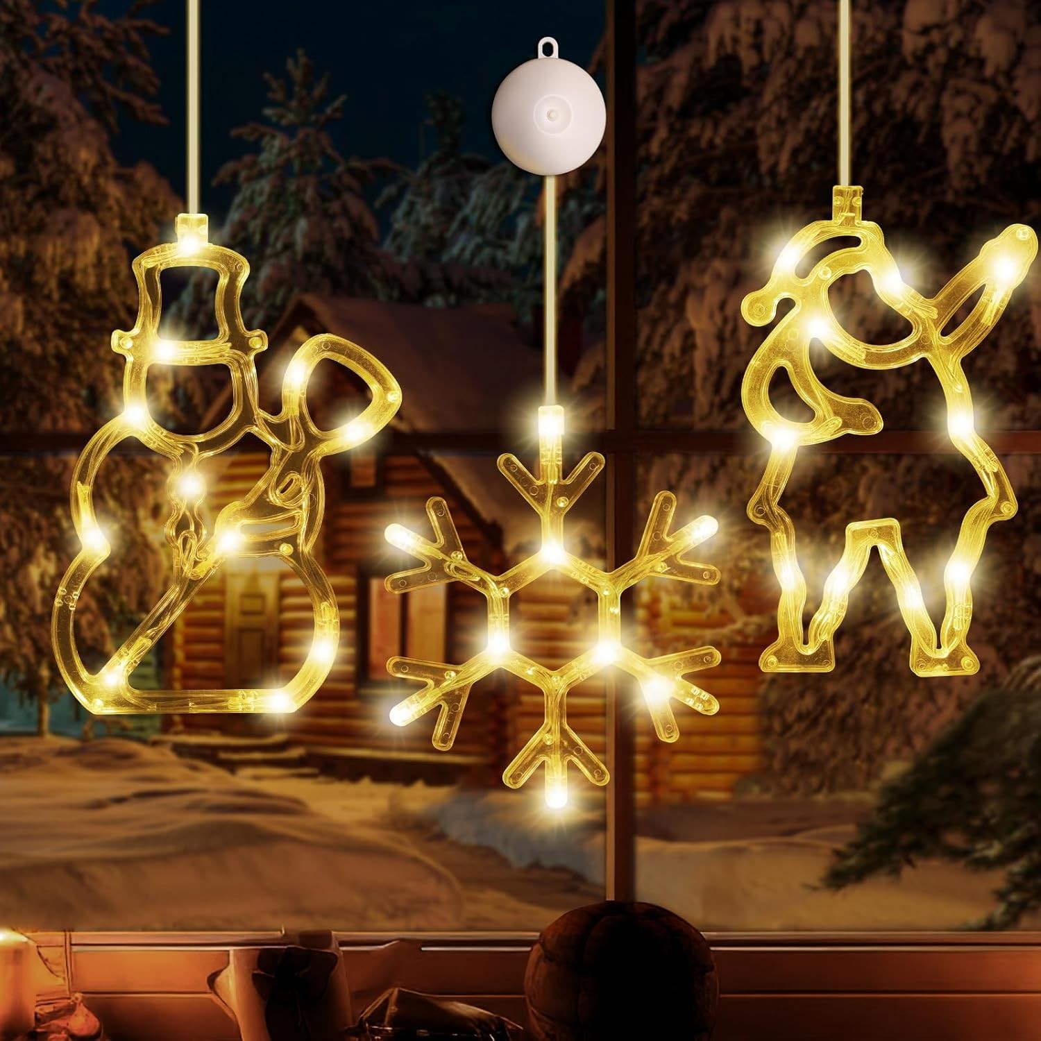 3PCS Christmas Lights, LED Window Lights with Suction Cups, Battery Type Christ