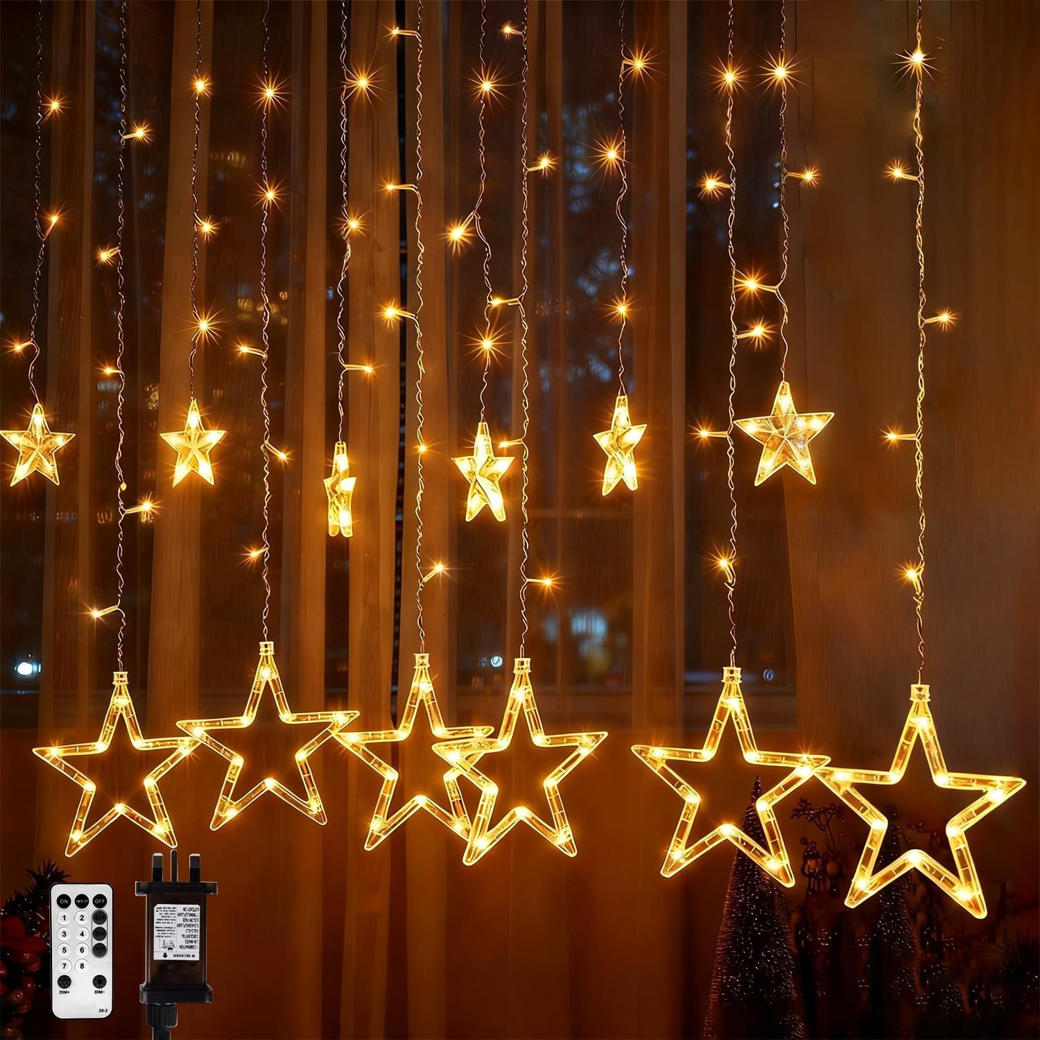 Opard Christmas Window Lights 3.6m 138 LEDs 12 Stars, Christmas Decorations Cur