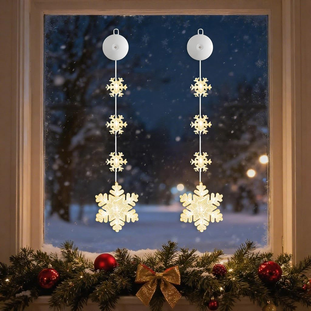 2 Pack Snowflake Christmas Window Lights, Battery-Operated Christmas Lights with