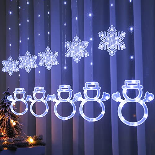 BLOOMWIN Christmas Window Lights 3 x 0.75M Snowflake & Snowman Curtain Fairy Lights USB Powered with Remote 8 Flashing Modes 160LEDs Xmas Party Wedding Home Bedroom Wall Garden Ornament Decoration