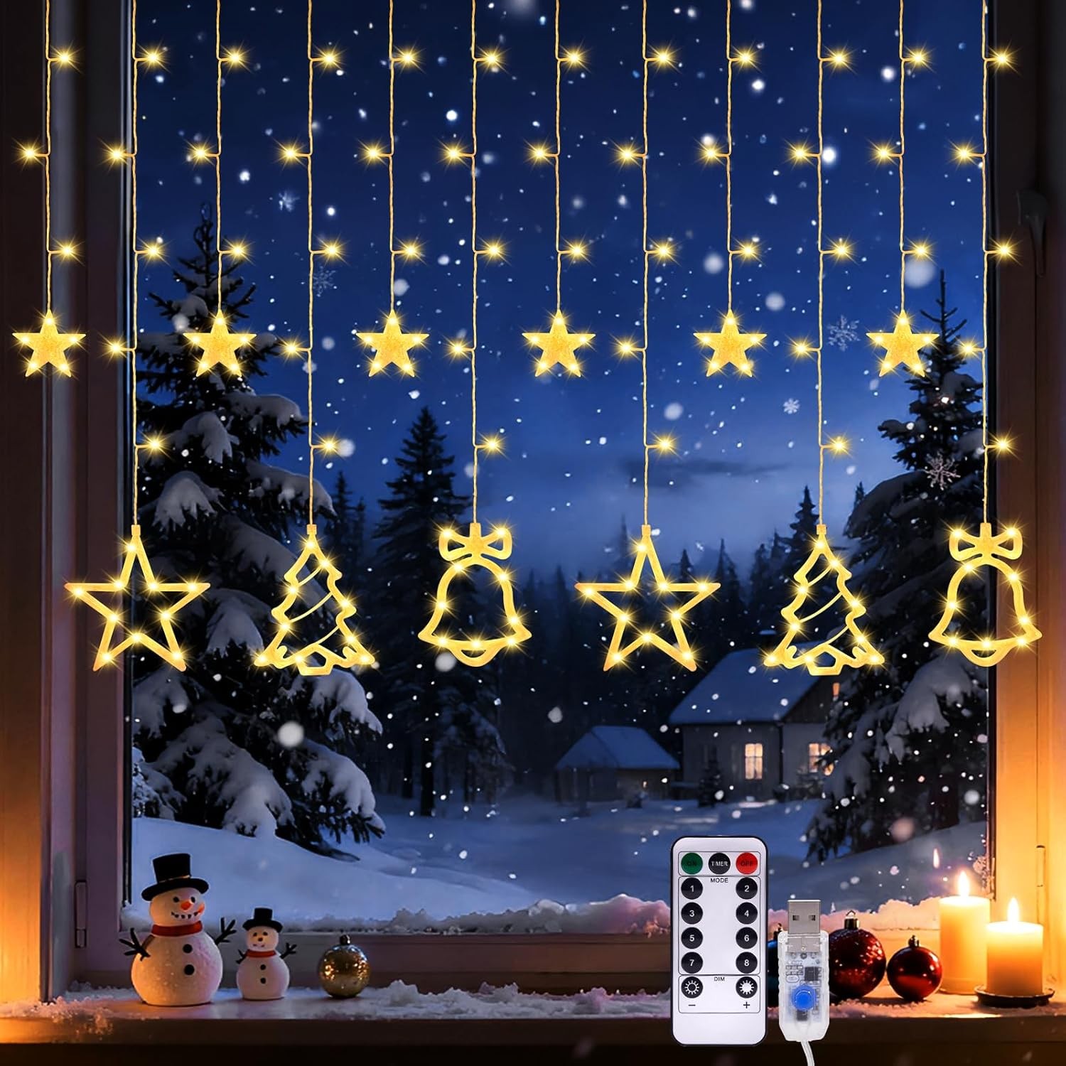 OWill Christmas Window Lights Indoor, 8 Modes Colourful Window Lights for Chris