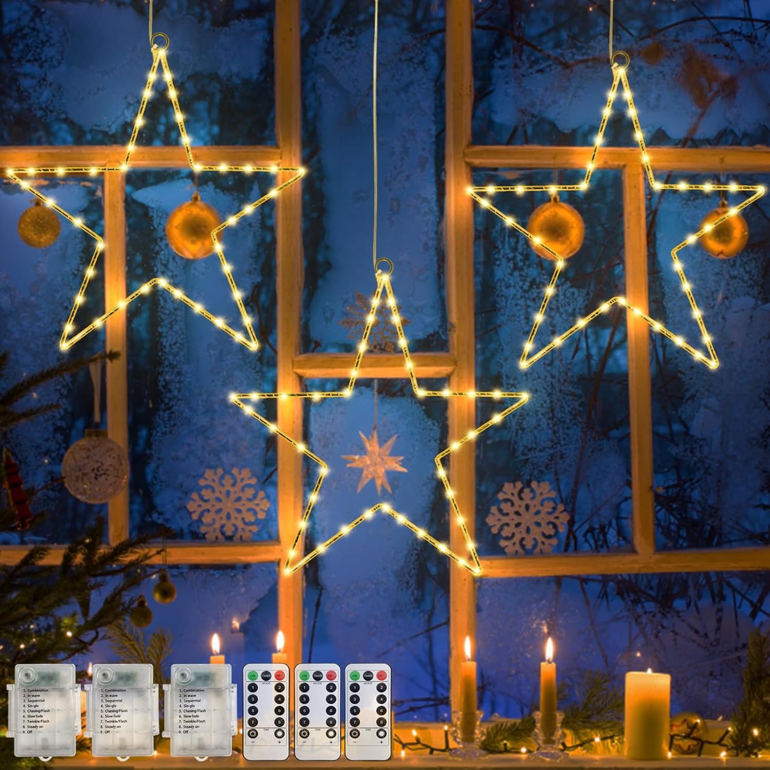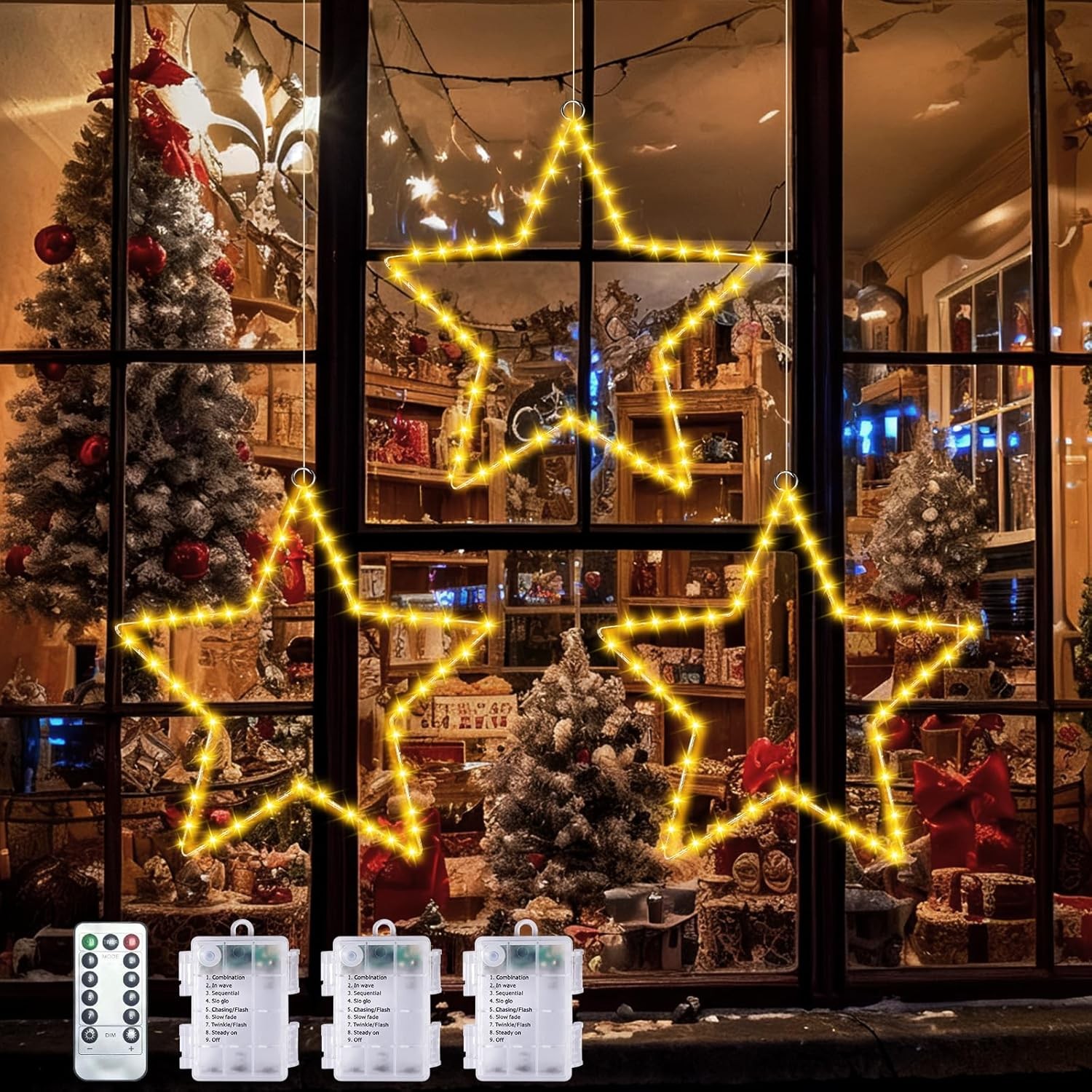 Jsdoin Christmas Window Lights 3 Packs Battery Operated Star Christmas Lights w