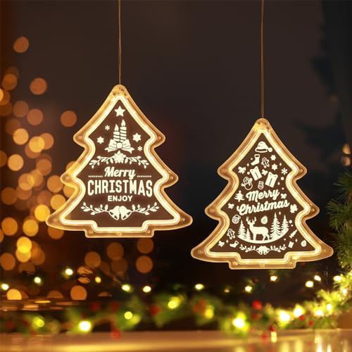 WLLXTK Christmas Window Lights Xmas Tree Home Decor with Suction Cups Hanging Lighted Decoration Window Glass Hanging Lights for Car, Christmas Tree