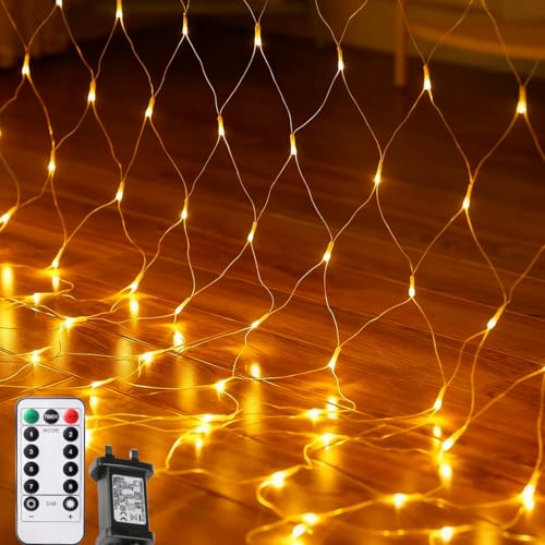 POIFL Outdoor Christmas Lights, 208 LED 3x2 m Net Lights Timer, IP65 Warm White Fairy Lights Plug in, 8 Modes Christmas Window Light, Curtain Lights Indoor for Balcony, Christmas Decorations, Bedroom