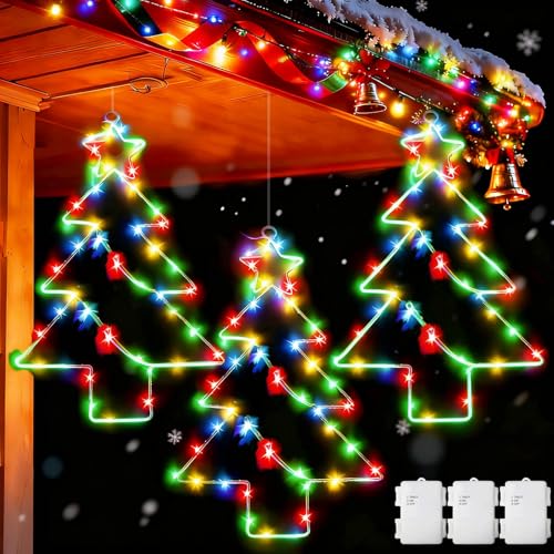 Joycome Christmas Window Lights 3 Pack 55 LED Hanging Battery Operated Christmas Tree Light with Timer, Waterproof Xmas Tree Window Lights for Party Indoor Outdoor Xmas Decoration - Multicolor