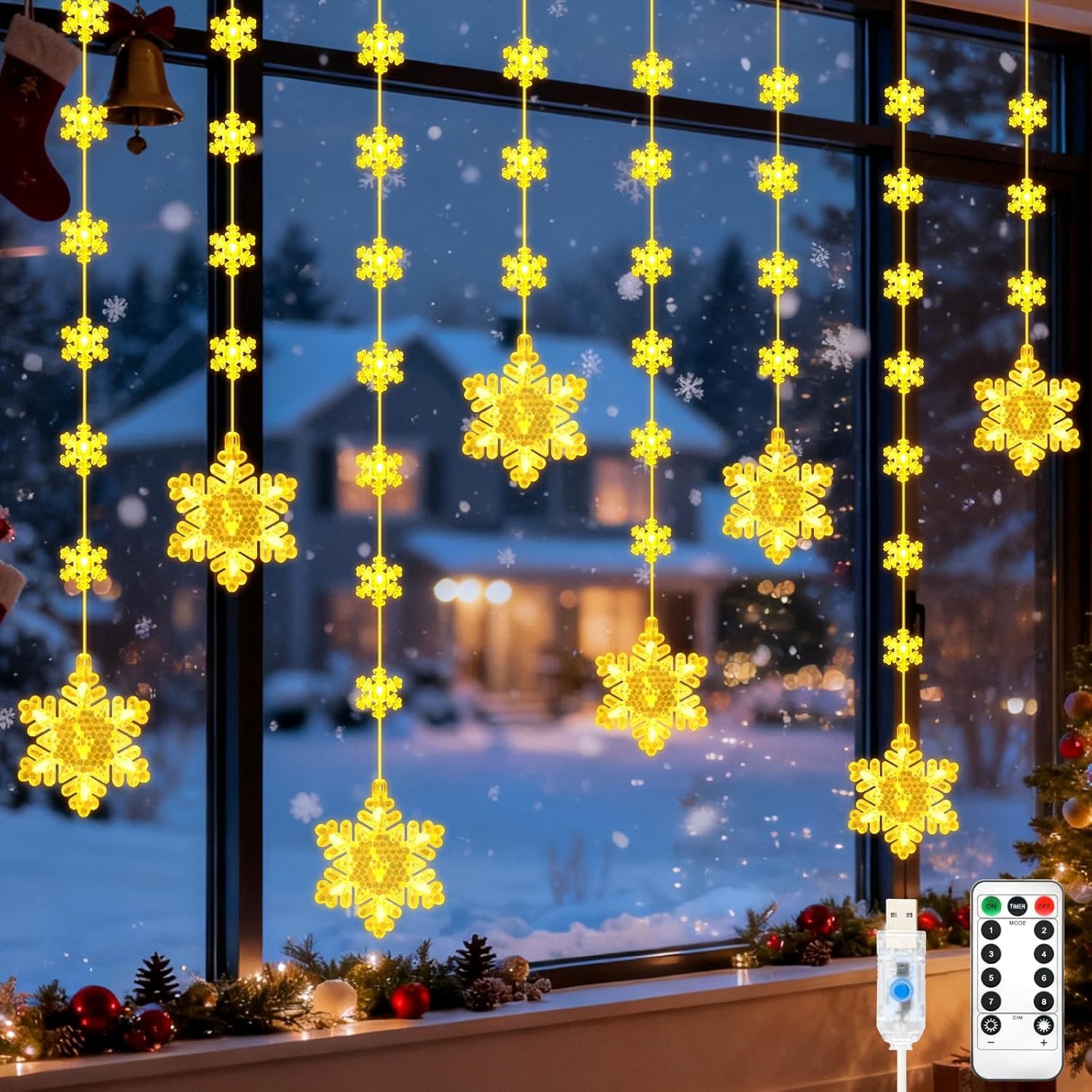 Christmas Window Lights 3 X 0.75M Snowflake Curtain Fairy Lights USB Powered wit