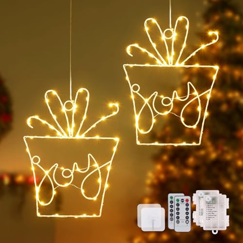 2 Packs Christmas Window Lights 120 LED Battery Operated Xmas Window Lights with Remote & Timer 8 Modes Christmas Hanging Lights Fairy Light Decorations for Indoor Outdoor Window Wall