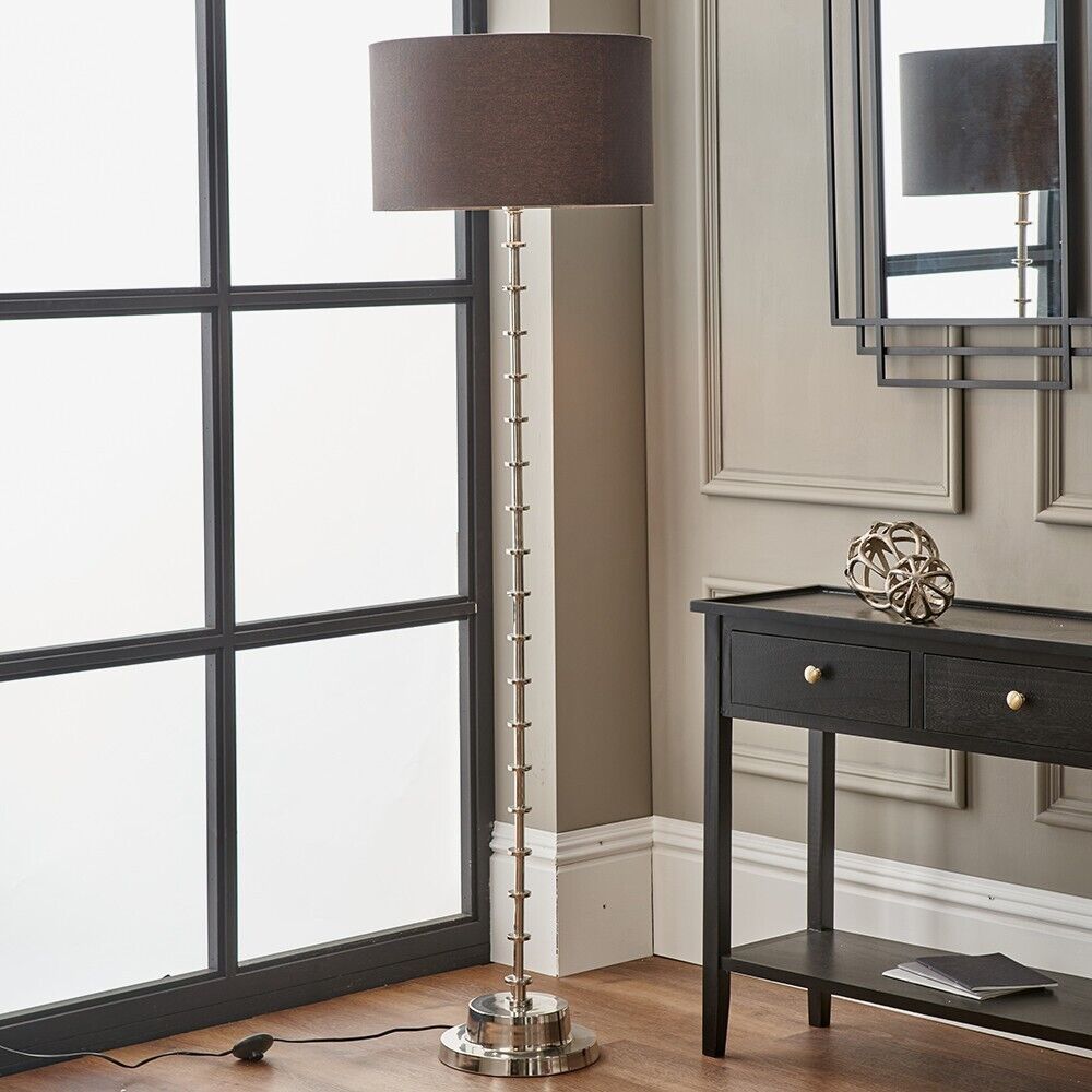 Charlie Chrome Floor Lamp With Large Charcoal Shade