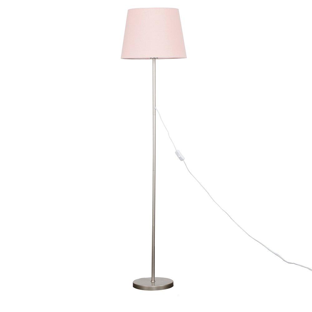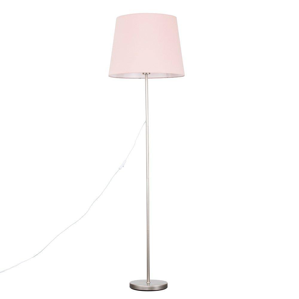 Tavel Brushed Chrome Marble Base Floor Lamp With Table And Large Blush Pink Shade
