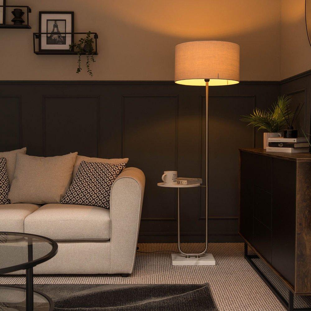 Tavel Brushed Chrome Marble Base Floor Lamp With Table And Large White Shade